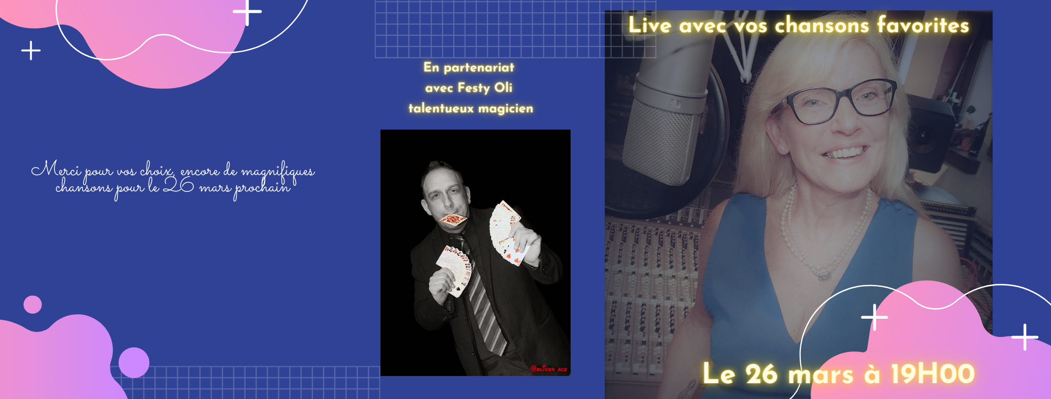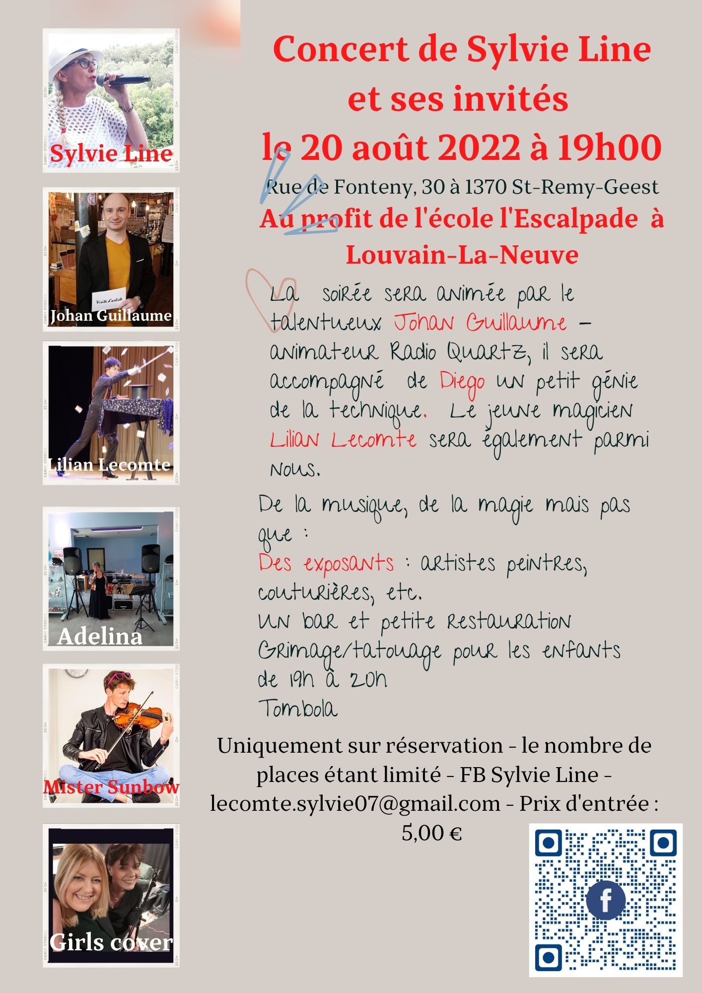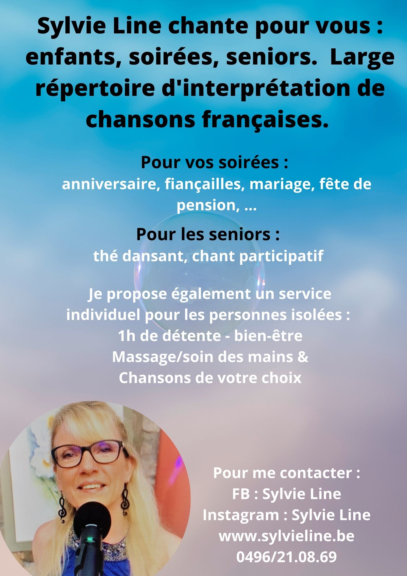 Photos concert le 09 août 2025shooting photo avec Fabriceshooting photos avec Fabriceshooting photos avec Fabriceau relais pour la vie en juin 2025concert 10/08/2024 au profit de La vie-làSalon du bien-être avec le massage enchantéSoirée organisée par le Partage ça créesuper souvenir la Résidence Dunant 16042024Ouverture du gala 10 ans de Magica Dour Participation à l’ouverture du Gala Magica Dour entourée de talentueux magiciensAnimation soirée Karaoke et danse années 80 17 février 2024Nouveau logo Apprentissage- Massage enchanté pour les enfantsAnimation souper 14 février 2024soirée dansante 4 novembre 2023 pour le Partage ça CréeParade de Noël en collaboration avec Radio Passion Fmsalon bien-être jodoigneMassage enchanté octobre 2023Massage enchantéPézennes 8 septembre 2023concert 12 août 2023 au profit du Relais pour la Vie de Jodoigneconcert 12 août 2023 au profit du relais pour la Vie de JodoigneChez Marie-Lise soirée Juke-Box 05 août 2023Soirée Juke Box podium relais pour la vie 24 juin 2023Animation au Clair Séjour juin 2023Résidence le Lothier mars 2023Animation Thé dansant avril 2023Scènes ouvertes ImagiparkK’Fée dansant Participation au Gala du TélévieConcert caritatif du 20/08/2022Visite d’artisteThé dansant Racour le 07/08/2022Mariage de Philomène et Dominique le concert août 2022 au profit de l’Escalpadephoto de Claudio Moreli animation – anniversaireSur les ondes de radio Quartzconcert du 20/08/2021avec festy Oli le 20/08/2021Live Fb 26/03/2021Live FB du 26/02/2021Passage ce 24-12-2020 sur radio QuartzPassage radio Passion Fm 106.5 Enregistrement studio Didavocalcoach 18/09/2020Je vous présente Sylvie and friends (JM & Guy).Drink Neptune 27/02/2020Drink Neptune 27/02/2020Pezenne les Mines juillet 2019Concours la voix d’or finale 2019Décembre 2018 : la maison de la laïcité d »HannutDécembre 2018Saint-Remy-Geest : fête de la musique 2019Fête de la musique 2019Balade du Miroir : juin 2018La vie d’une femme : juin 2018Fête privée décembre 2019Chant pour les enfants de Orp-Jauche : décembre 2019Interview radio Passion FmSpectacleFête privéeAnimation souper Fête de la musiqueChant pour les enfants de Orp-Jauche : décembre 2019Chant pour les enfants de Orp-Jauche : décembre 2019Salon de la plume des notes et des arts 2019Salon de la plume des notes et des arts 2019Salon de la plume des notes et des arts 2019La régieLivre ou verre 29/12/2019Livre ou verre 29/12/2019
